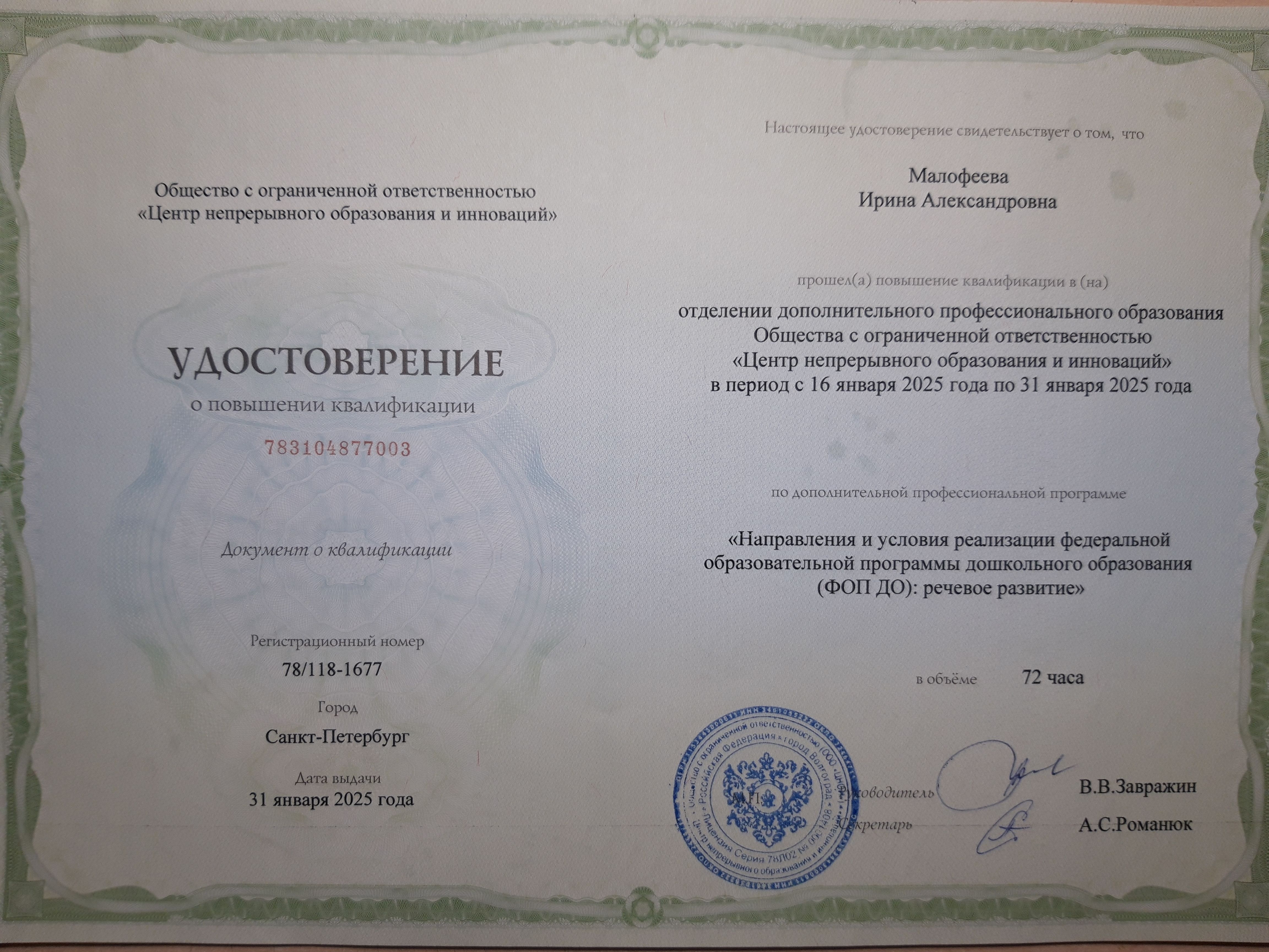 Курсы повышение квалификации по теме "ФОП ДО: речевое развитие"