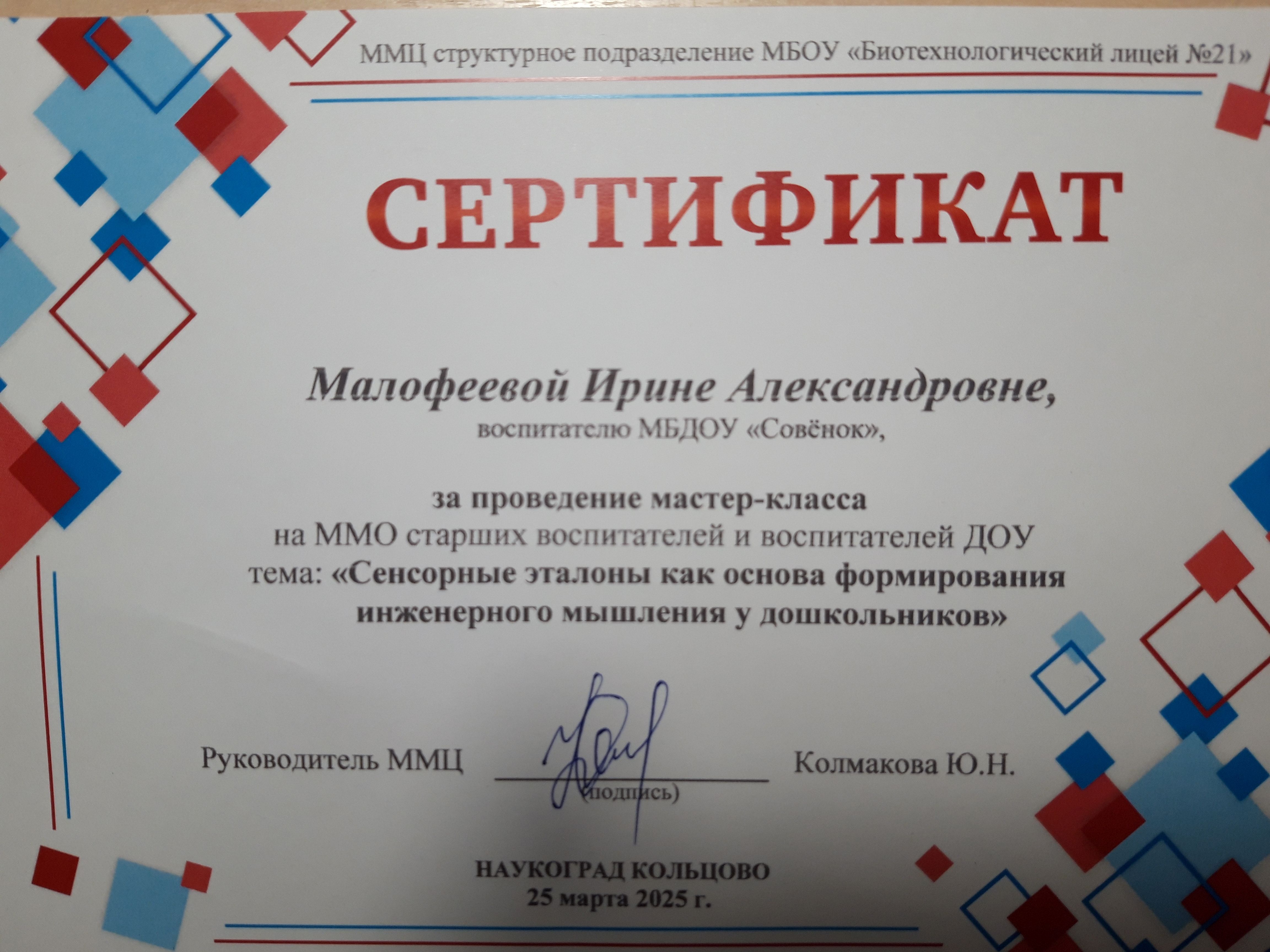 Сенсорные эталоны. Выступление на ММО.
